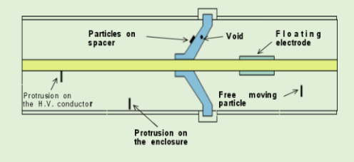 GIS绝缘系统是由SF6气体和环氧-氧化铝的聚合物组成的固体支柱绝缘子组成。为了确保气体及固体绝缘件的可靠性,对每个间隔的GIS绝缘和局部放电现象可能存在及形成的分析及评价是非常重要的。GIS等电力设备绝缘体中绝缘强度和击穿场强都很高,当局部放电在很小的范围内发生时,击穿过程很快,将产生很陡的脉冲电流,其上升时间小于1ns,并激发频率高达数几百兆到数G赫兹的电磁波。局部放电检测特高频(UHF)法基本原理是通过UHF传感器对电力设备中局部放电时产生的特高频电磁波信号进行检测,从而获得局部放电的相关信息,实现局部放电检测。根据现场设备情况的不同,可以采用内置式特高频传感器和外置式特高频传感器。由于现场的电晕干扰主要集中在300MHz 频段以下,因此UHF 法能有效地避开现场的电晕等干扰,具有较高的灵敏度和抗干扰能力,进一步可实现局部放电带电检测、定位以及缺陷类型识别等优点。